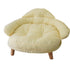 Very unique comfortable bed with wooden legs shaped like a cloud.